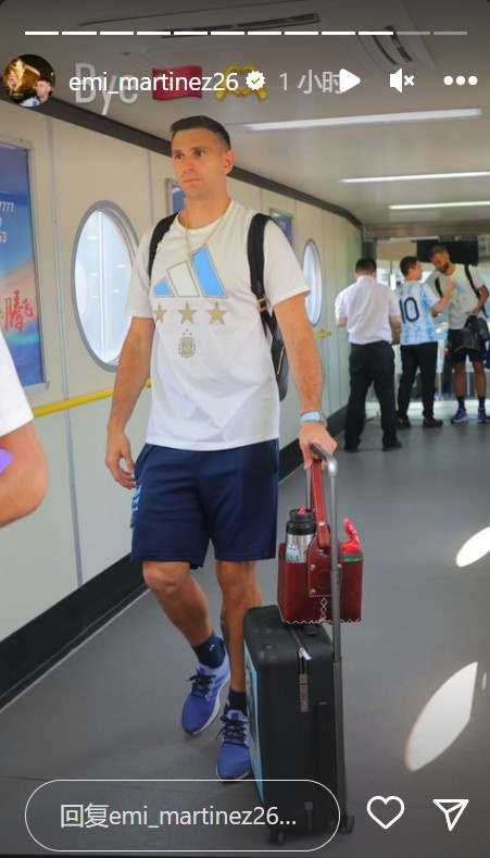 今天,阿根廷队启程前往雅加达,备战19日与印尼队的热身赛,马丁内斯也在社媒晒出登机的照片,告别中国。