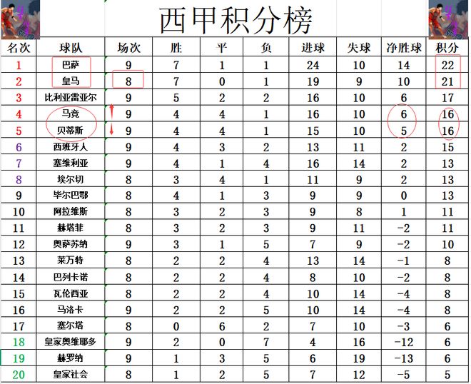 北京时间10月19日凌晨,2025-26赛季西甲联赛第9轮再赛4场。经过一番鏖战,马竞主场1:0小胜奥萨苏纳,马洛卡客场3:1击败塞维利亚,巴萨主场2:1绝杀赫罗纳,皇家贝蒂斯客场2:2战平比利亚雷亚尔。巴萨上轮客场惨败给塞维利亚丢掉了榜首,令巴萨球迷更郁闷的是,上轮塞维利亚在主场主场大胜击败榜首的巴萨,昨晚塞维利亚就能在主场输给垫底的马洛卡。巴萨今天回到诺坎普球场对阵新的垫底球队赫罗纳,他们竟然差点还赢不了。开场后巴萨就展开猛烈攻势,第2分钟,巴萨获得禁区左侧边上任意球机会,拉什福德操刀主罚大力兜射,门将加扎尼加奋力将球扑出。第12分钟,巴萨右路雅桑,孔德,佩德里和亚马尔之间连续配合,亚马尔禁区角上接球内切杀入禁区横传,佩德里背身接球转身持续横切甩开防守转身扫射,皮球击中球门左侧门柱内侧弹入网窝,巴萨1:0取得良好开局。然而巴萨取得领先仅仅7分钟,场面被动的赫罗纳抓住定位球机会,波图操刀主罚兜传门前,加西亚头球解围不远,马丁内斯禁区线上抢到第2落点头球往门前顶,维特塞尔小禁区前沿抢点倒挂金钩,皮球击地后弹入球门左侧死角,赫罗纳1:1快速扳平比分。扳平比分的赫罗纳气势大涨,随后他们2次反击都获得了绝佳机会,只是瓦纳特,波图单刀都无力把握住,先是瓦纳特单刀推射被门将什琴斯尼奋勇扑出,随后波图超级单刀推射被门柱挡出,巴萨逃过一劫。稳住局面的巴萨再展开猛烈攻势,第31分钟,巴萨获得禁区左侧前沿任意球机会,拉什福德操刀主罚大力兜射,BOOM的一声皮球被横梁挡了出来。第38分钟,赫罗纳反击又获得单刀,只是他们把握机会能力实在太差,希尔超级单刀打了飞机。易边再战巴萨继续加强攻势,然而全场爆射31脚的他们迟迟未能把握机会,第50分钟,费尔明禁区弧顶左侧推射被门柱挡出。第70分钟,拉什福德禁区内抢点疑似被雷斯推倒,但主裁没有表示。补时阶段巴萨主帅弗里克不断向主裁抱怨,结果领到红卡一张被罚下场。弗里克这一“祭天”,巴萨2分钟后就抓住机会,补时最后1分钟,巴萨中场中路转移到前场右侧,德容插上突入禁区倒三角回传门前,替补登场没多久的阿劳霍小禁区前沿抢点铲射,皮球飞入球门右下死角,巴萨2:1压哨绝杀赫罗纳。积分榜方面,最后压哨绝杀赢球后,先赛的巴萨暂时以1分优势超过皇马夺回榜首,皇马跌到第2。马竞今天赢球后,近8轮4胜4平保持不败,以1个净胜球的优势超过贝蒂斯挤入前4,落后榜首的巴萨6分。射手榜方面,姆巴佩9球稳居榜首,阿尔瓦雷斯6球位列第2。穆里奇今天打入一球,追上维尼修斯,艾永5球并列第3。莱万今天缺阵,和托雷斯,A席尔瓦,罗梅罗等人4球挤入前十。