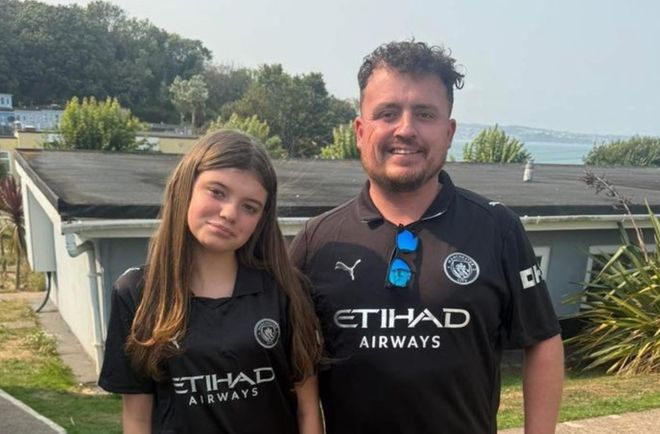 雷速体育10月22日讯 曼城队在对阵比利亚雷亚尔的欧冠比赛开始前几小时,一名蓝月球迷在西班牙被发现死亡,曼城队官方对此发文表示哀悼。35岁的盖伊·布拉德肖周二晚前往西班牙观看曼城的欧冠比赛。布拉德肖当时住在贝尼多姆,距离比利亚雷亚尔市约130英里,和这家英超俱乐部的大部分远道而来的球迷在一起。然而,悲剧发生了:周二凌晨,这名球迷被发现死在了床上。布拉德肖的家人向他表达了感人的敬意,曼城也表达了哀悼。该球迷的死因尚未确定,但他的表弟杰斯·布拉德肖告诉《曼彻斯特晚报》,家人已被告知“没有可疑情况”。布拉德肖留下了11岁的女儿、母亲珍妮特、双胞胎弟弟凯恩和弟弟扎克,他此前经营着自己的地毯清洁生意。(下图是布拉德肖和女儿合影)