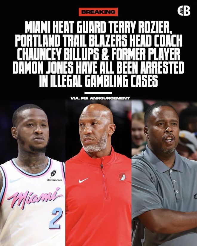 其中被抓的人就包括开拓者的教练比卢普斯还有热火球员罗齐尔以及NBA前球员达蒙-琼斯