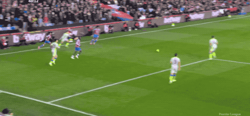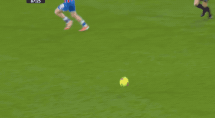 第87分钟,水晶宫球员配合失误,替补登场的萨维尼奥狂奔60多米到了禁区,亨德森被迫将其放倒,曼城获得点球。