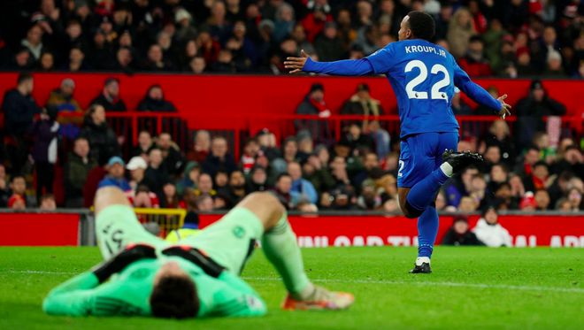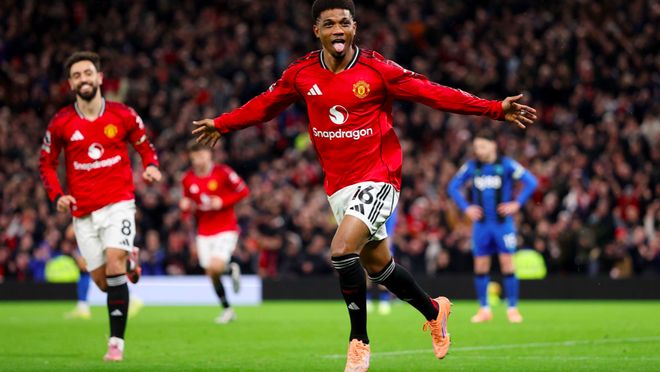 北京时间12月16日凌晨,英超第16轮的最后一场比赛,在曼联和伯恩茅斯之间展开。上轮客场4-1战胜垫底的狼队后,曼联最近3轮拿到7分,本场比赛前暂时排名第八。伯恩茅斯则是在经历了相当完美的开局,一度排名第二后,最近6轮仅仅拿到2分,直接跌至第15位。开场之后,曼联攻势如潮,比赛踢了10分钟,曼联已经完成了6次射门,伯恩茅斯门前风声鹤唳。第13分钟,曼联在前场抢断过后连续一脚传球,达洛特传中,库尼亚抢点,佩特罗维奇扑了一下,皮球到了门前,阿玛德·迪亚洛头球轻松将球顶进空门。领先后的曼联继续狂轰滥炸,第19分钟,经过一系列流畅的配合,B费送出妙传,库尼亚兜射远角,皮球没能命中目标,相当可惜。第25分钟,曼联卷土重来,卡塞米罗一脚出球,达洛特心有灵犀,姆贝莫禁区内的射门,被佩特罗维奇没收。直到第29分钟,伯恩茅斯才完成本场的第一次射门,塔韦尼耶后排插上头球攻门,拉门斯做出了关键的封堵。伯恩茅斯的防守,在曼联的高效进攻下,四处漏风,第34分钟,阿玛德·迪亚洛一路带球狂奔,以一敌三,可惜最后的射门被后卫拦截。2分钟后,接到海文的直塞,库尼亚送出精准传中,姆贝莫不停球直接射门,皮球稍稍高出。第40分钟,卢克肖停球过大后,又输掉身体对抗,塞梅尼奥突入禁区,斜射破门,打破了个人7场比赛的进球荒。上半场补时阶段,曼联获得角球,B费将球开出,约罗做了一个完美的挡拆,卡塞米罗后点头球破门。上半场结束,曼联2-1暂时领先,曼联完成了17次射门,伯恩茅斯也有7次。下半场开始仅仅1分钟,曼联防线又出现漏洞。塔韦尼耶的传球恰到好处,埃瓦尼尔森的射门击中立柱,弹进球门,拉门斯无能为力。第52分钟,卡塞米罗被迫犯规,送给伯恩茅斯位置极佳的任意球,塔韦尼耶直接射门,伯恩茅斯将比分反超。和上半场截然不同的是,曼联下半场踢了18分钟,才完成了第18次射门。第77分钟,曼联获得禁区前的任意球,B费轰出完美世界波,两队再次回到同一起跑线。第79分钟,曼联打出快速反击,姆贝莫策动进攻,舍什科的传中被挡了一下,库尼亚一蹴而就。短短的3分钟,曼联连进两球,逆转局面,老特拉福德球迷开启狂欢模式。但是,精彩的剧情还没有结束。第84分钟,19岁的小将克鲁皮再次将比分扳平,进球后的他连续后空翻,肆意庆祝。最终,总身价7.3亿的曼联在三度领先的情况下,4-4战平伯恩茅斯,主场惨遭爆冷。红魔最近4轮拿到8分,最近10轮只有1败,攀升至积分榜的第六位。