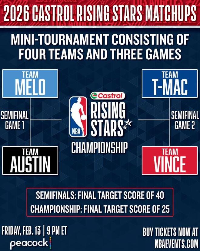 北京时间1月31日,NBA官方公布了2026年全明星新秀赛的对阵形势,杨瀚森所在的G联赛队将对阵由拥有弗拉格和克林根并由卡梅隆-安东尼挂帅的Team Melo。